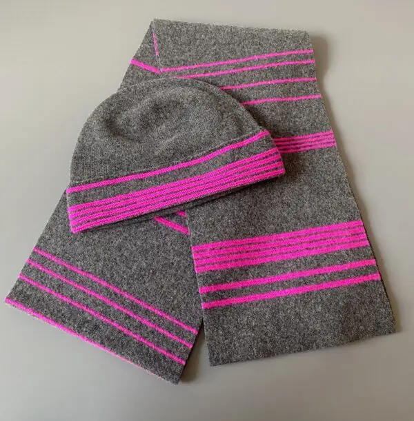 The Lorn hat, available here in gorgeous charcoal grey with bright pink accent stripe, will be a great wintry wardrobe staple or make the perfect gift, teamed with coordinating hat and gloves from this collection. Beanie style with turn up for cosy comfort.