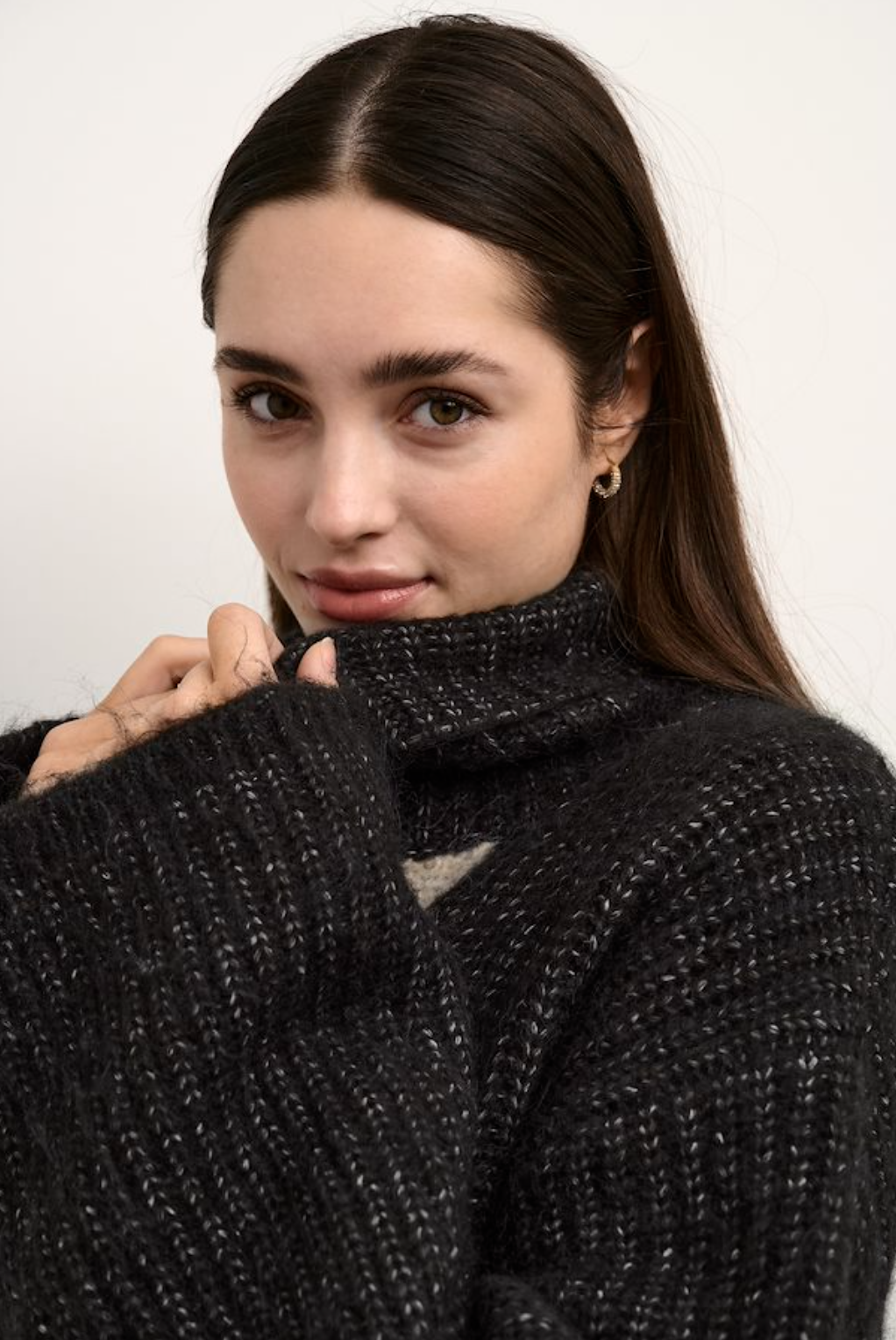 Kaffe KAsigrid Roll Neck Pullover – Black / Sand Melange