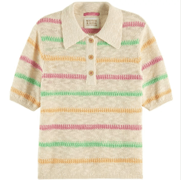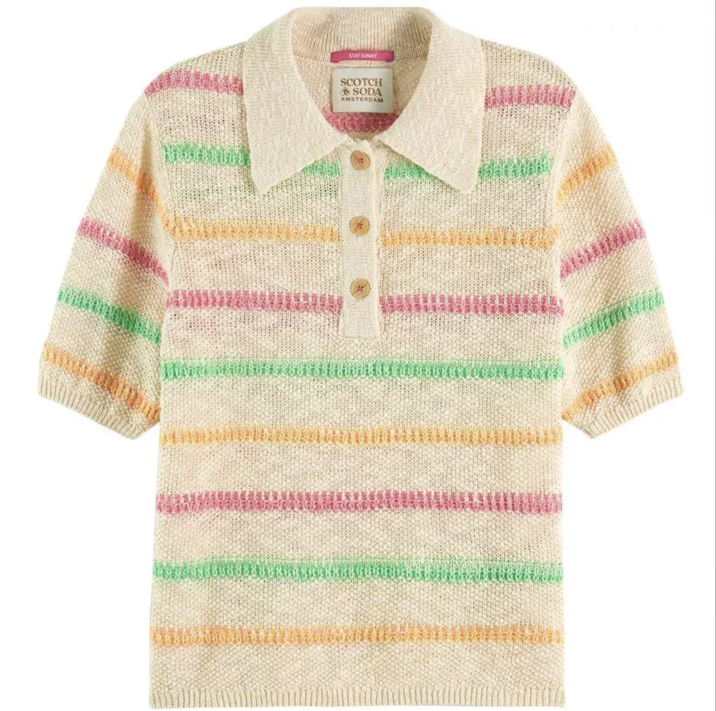 Scotch & Soda Stripe Knitted Polo – Vanilla White